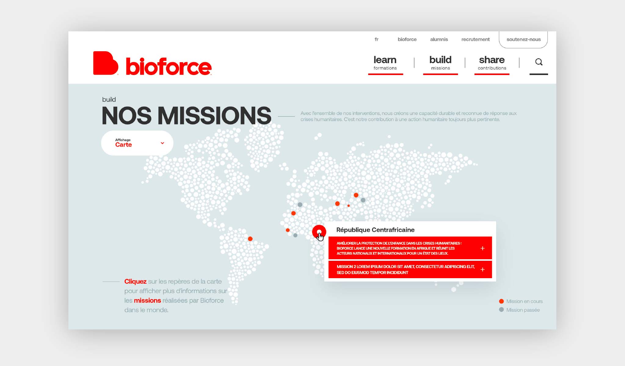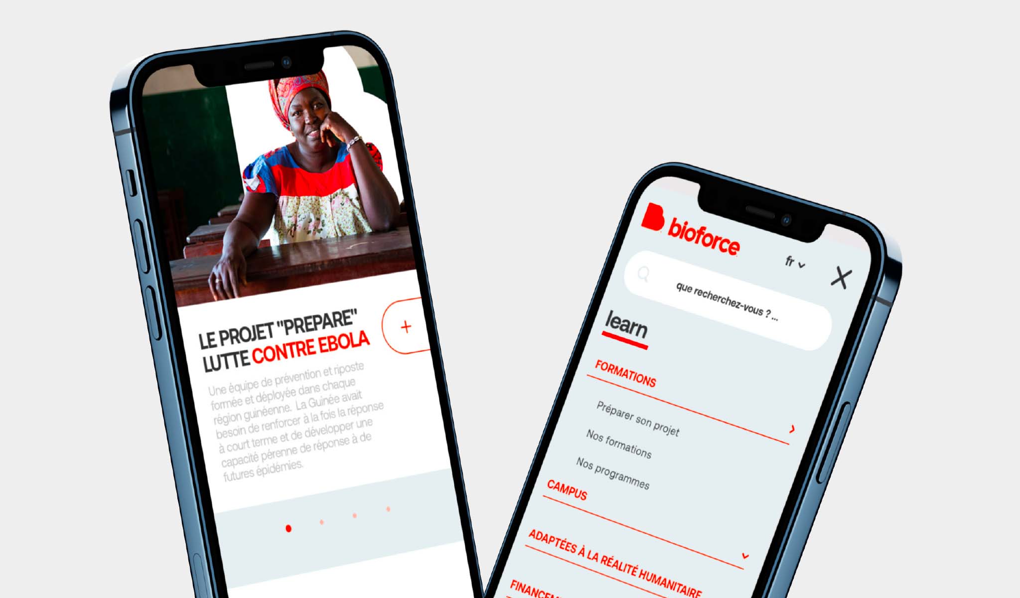 Bioforce doit être présenté comme un organisme de référence à l’international. Les actions et missions doivent être montrées, sublimées, le site doit donc véhiculer toute la passion qui anime l’institut.