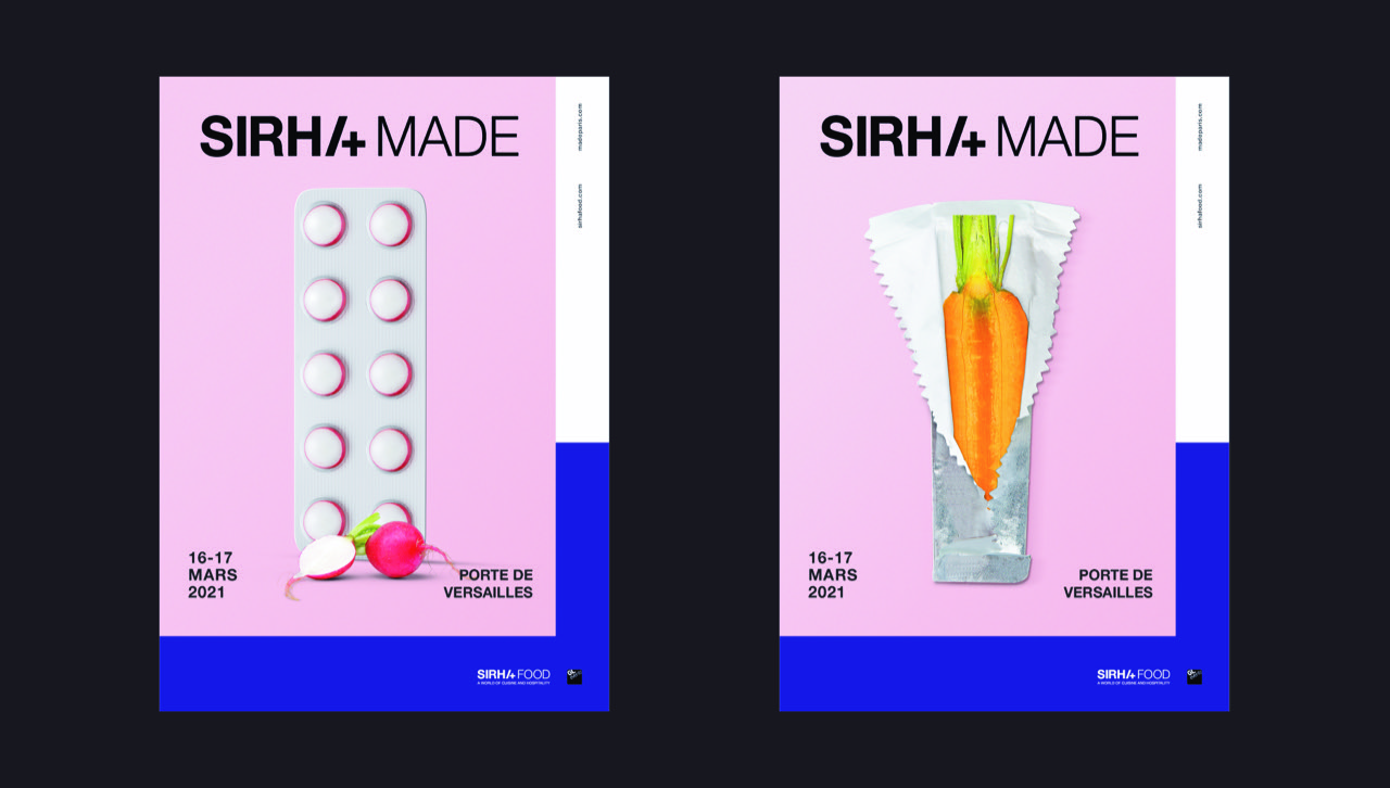 Au coeur de la galaxie Sirha Food, Sirha Made est le salon premium annuel de tous les acteurs et porteurs de projets de l’ensemble des réseaux de distribution (GMS, grossistes, restauration collective &commerciale, épiceries fines, magasins bio, e‐commerce...) à la recherche de fabricants talentueux et futurs partenaires pour le développement de produits originaux à marques propres, nationales et personnalisés. Les équipes de Made nous ont sollicité afin de repenser le positionnement et l'expression du salon.